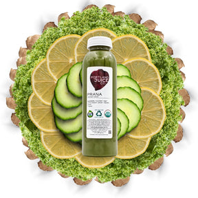 The Prana is a savory delight and one of our best selling juices. It is made with kale, collard greens, cucumber, cilantro, lemon, and ginger. This savory juice packs in over four servings of greens and it will fill you up.